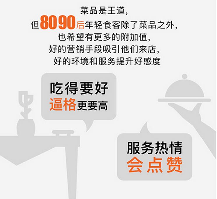随着消费需求的提升,餐饮行业竞争日渐激烈,当80,90后的年轻食客成为了餐饮消费的主力军,如何了解年轻食客的喜好,跟随潮流推陈出新,是餐厅企业面临的最大挑战者!